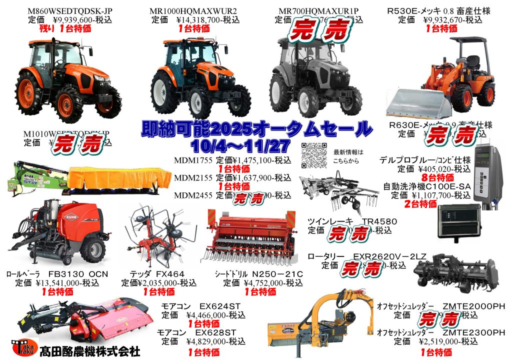 セール開催です。価格は各担当にお問い合わせ下さい。